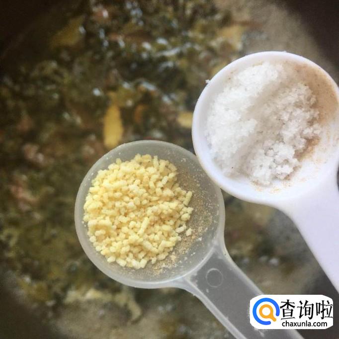 接着往锅中加入适量的盐巴和味精,小煮片刻就可以出锅了。