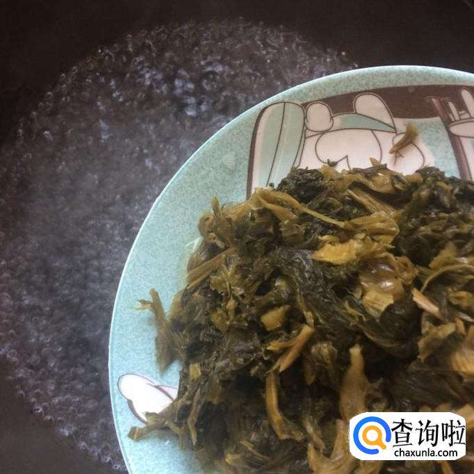 等到锅中的水开倒入酸菜煮五分钟,如下图所示。