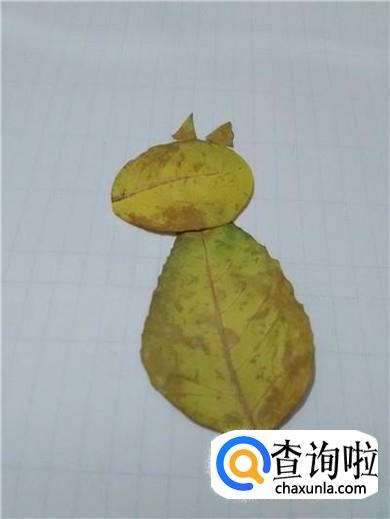 再从叶子上剪两个小三角形,粘在松鼠的头上,当作两只耳朵。