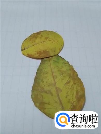 先将一片大叶子粘在纸上,当作小松鼠的身体。