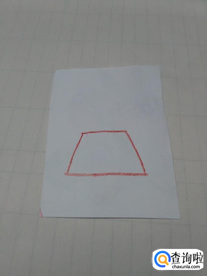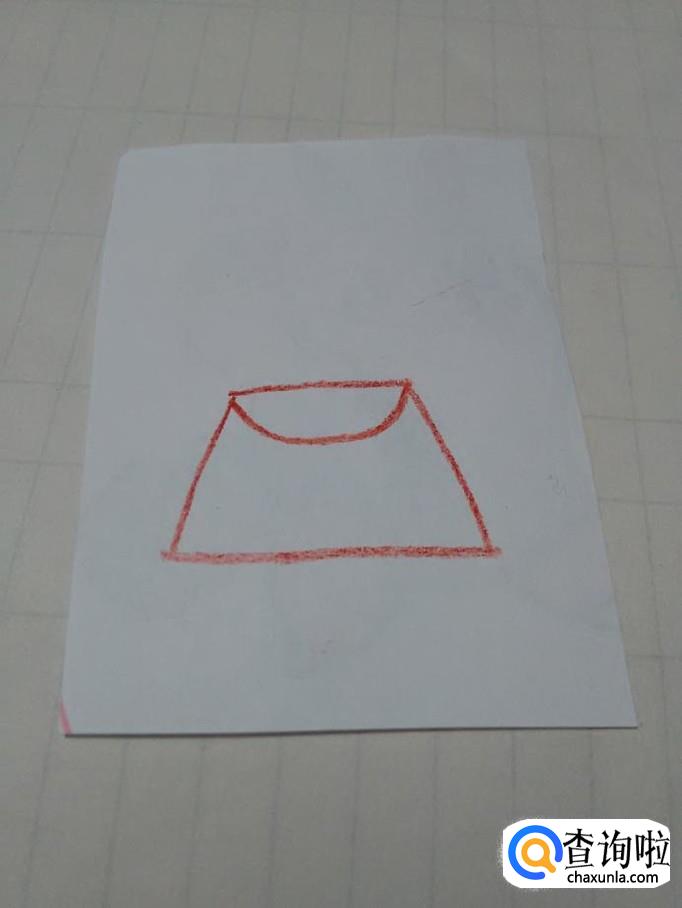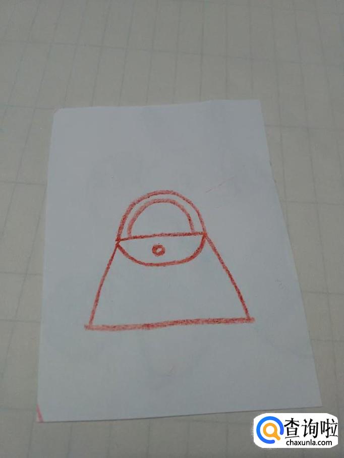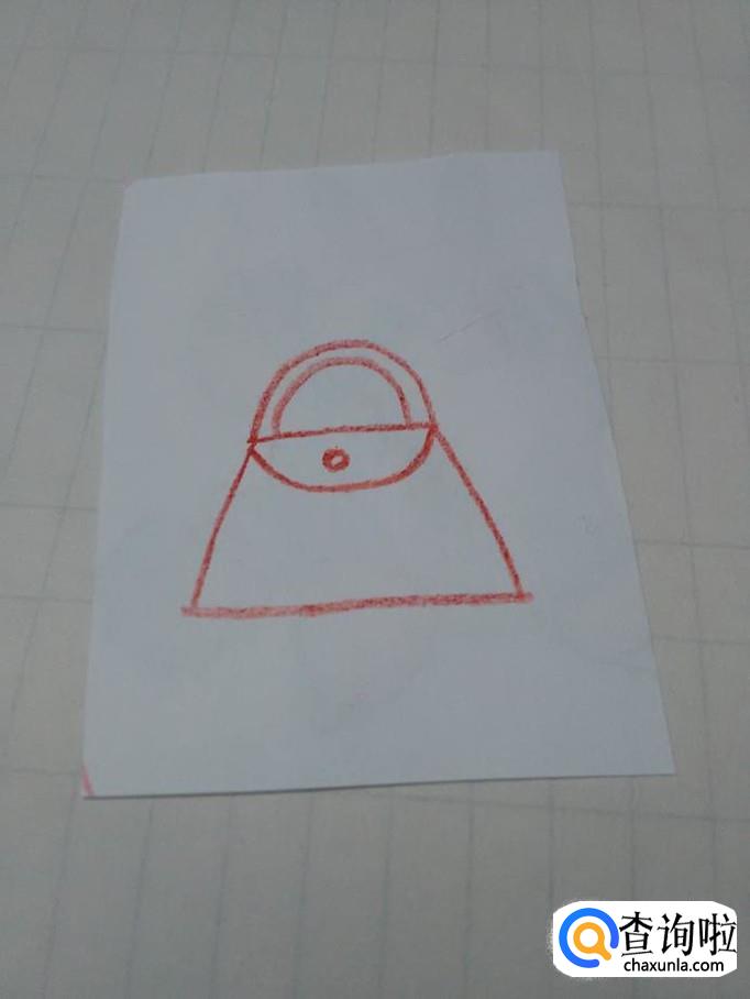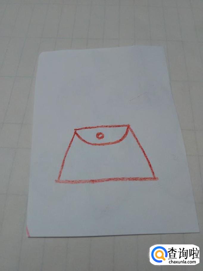 先用彩笔在纸上画一个梯形,表示手提包的外部轮廓。