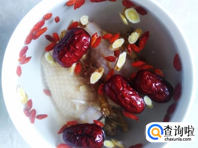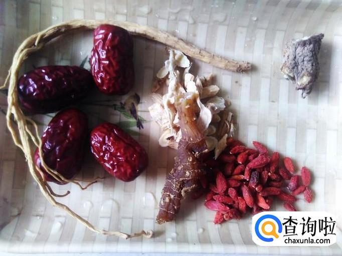 土鸡腿1个,黄精10克,当归、黄芪、枸杞、党参、红枣。