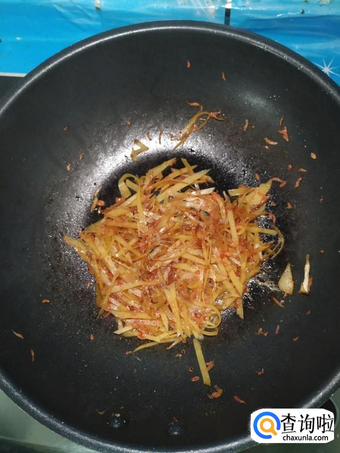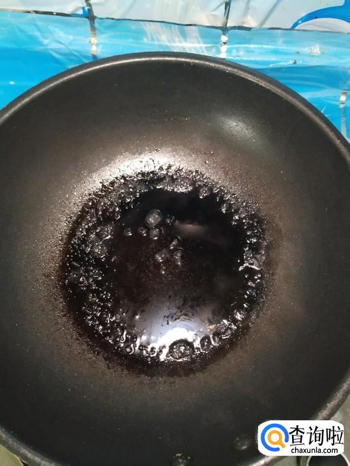 锅中放入适量清水,再加入适量冰糖,水和糖的比例是1:2,小火熬至冰糖溶化,大泡变小泡,开始出现糖色,然后将柚皮丝倒入锅中,翻炒均匀。