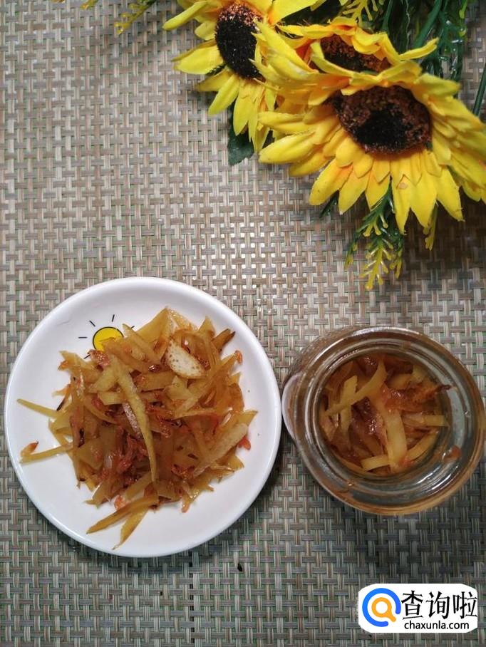 盛出放在一个容器中,趁热尝一尝,味道还不错。这个时候可以拿来泡茶喝了。