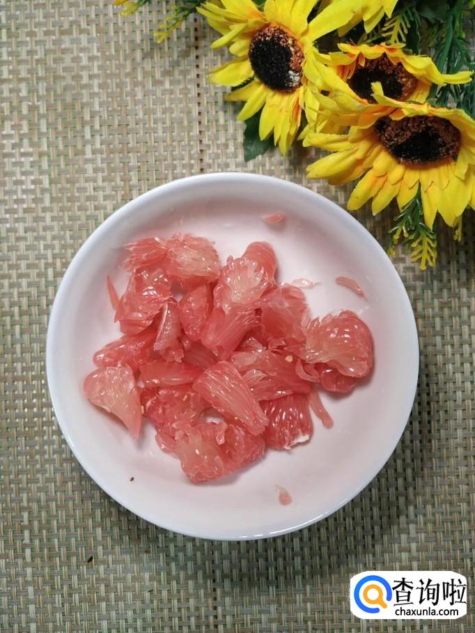准备适量柚子果肉,用勺子压碎,放入碗中备用。