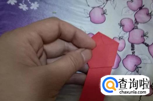 之后我们将短的纸条折叠到里面,并压平,如图所示。