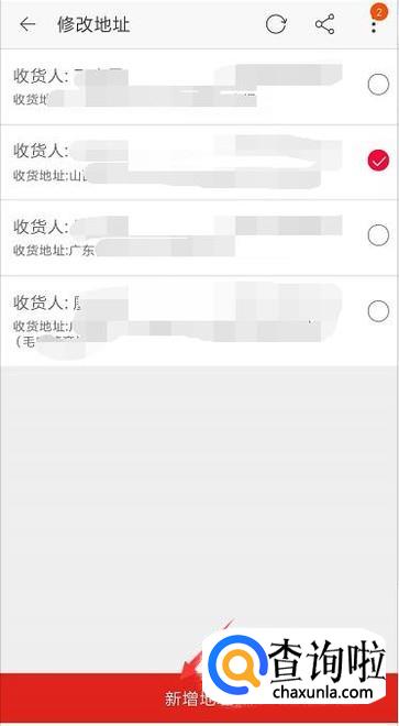 然后我们就会看到已有地址和新增地址,填写好需要的地址后就点击一下。