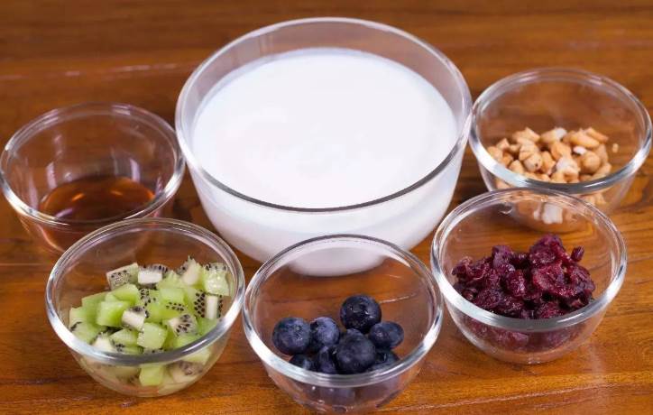 酸奶可以补充坚果水分的不足,加强蛋白质的比重,同时又助消化,而水果的搭配则是显得口味更新鲜,元素更多元,而且本身水果与酸奶就很搭。