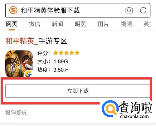 在搜索框中输入“和平精英体验服下载”并点击搜索。