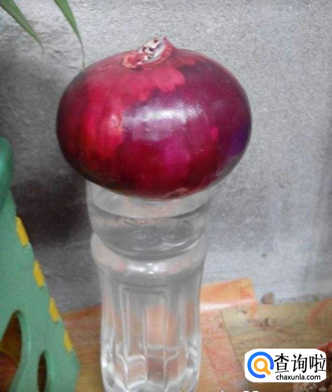 然后在杯子里装满水,把洋葱放在杯子上;