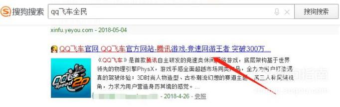 首先我们打开搜狗搜索引擎搜索“QQ飞车全民”后进入官网。
