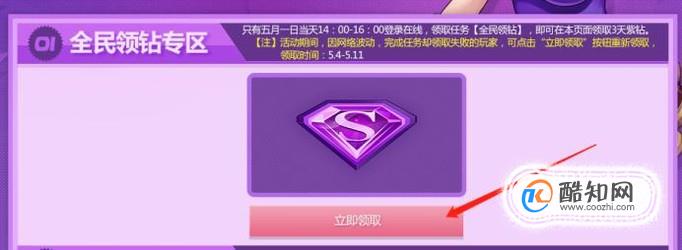 登录成功后我们看到下方有“全民领钻”的活动,我们点击“领取”即可