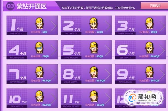 再有,如果你开通了紫钻功能,那么我们可以下拉到“紫钻福利专区”继续领取福利。还有我们可以根据开通紫钻的时间段领取相应的福利。