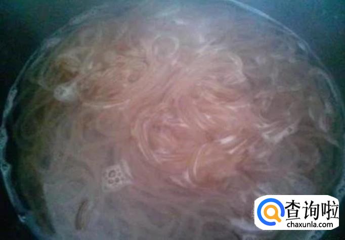 然后把粉条放在锅里煮几分钟,如果筷子可以夹断那么就可以捞起来。
