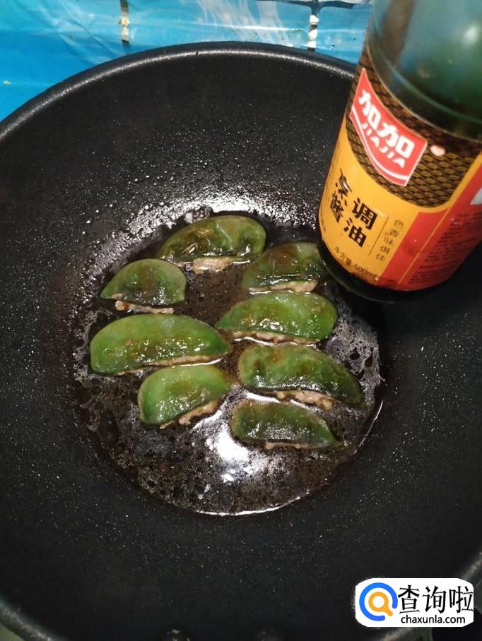 平底锅放入适量油热后,将扁豆均匀的放在锅中,小火慢煎,一面煎好之后,翻煎另一面,两面都煎至变色后,就差不多了。
