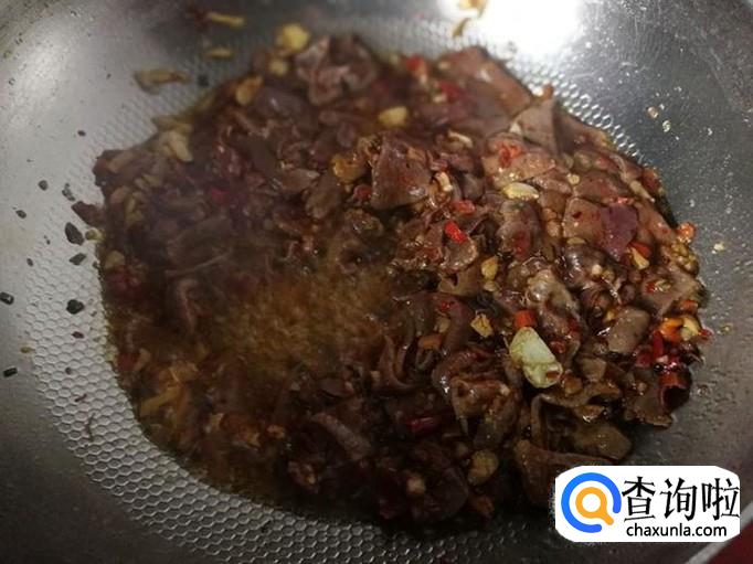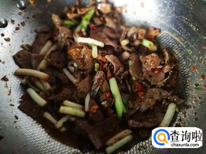倒入拌好的猪肝翻炒,注意一定要用大火爆炒至猪肝迅速变色。