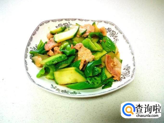 旱黄瓜 2根,青椒(麻辣)1个 ,五花肉 100克 。