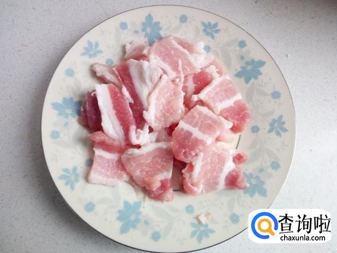 五花肉用水冲洗一下,控干水分,切成薄片。
