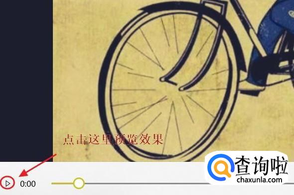 点击确定以后,软件右侧就已经将这两张照片合成视频了,点击播放按钮可以预览效果;不过还不算完美,我们在页面上方找到“音乐”,然后给视频添加一段背景音乐;