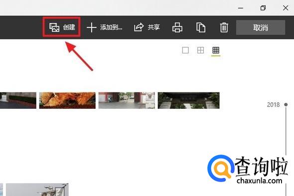 打开它以后,我们从中找到即将合并的照片,当然首先点击照片然后选择照片查看器打开方式也是可以的,选择完毕以后点击软件右上角的“创建”;