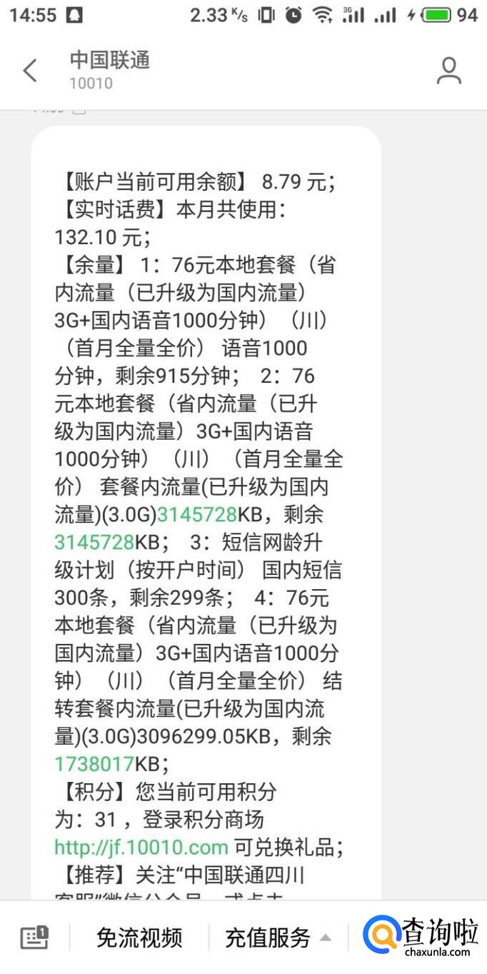 挂断之后稍等片刻,我们就能够收到相应的流量等套餐信息的短信了。