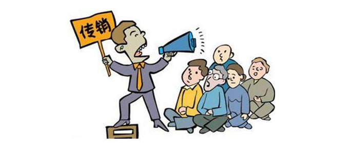 金字塔销售计划是一种骗局,就是利用高拨出比率做诱饵,单纯地依靠炒做奖金制度的方式使销售额达到几何增长,让少数人的收入在短期内达到天文数字,以此来骗取新人的加入,购买一大堆自己根本不需要也卖不掉的产品。也有可能部分公司会告诉直销员,它所拨出的奖金比率高达60%,以此来吸引你加入。但这里的60%是大有文章可做的。