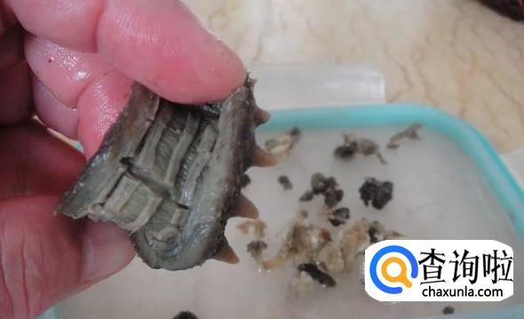 半个小时泡软之后,将海参剪开清理内脏,然后剪成几段,这样能够有利于吸收水分。