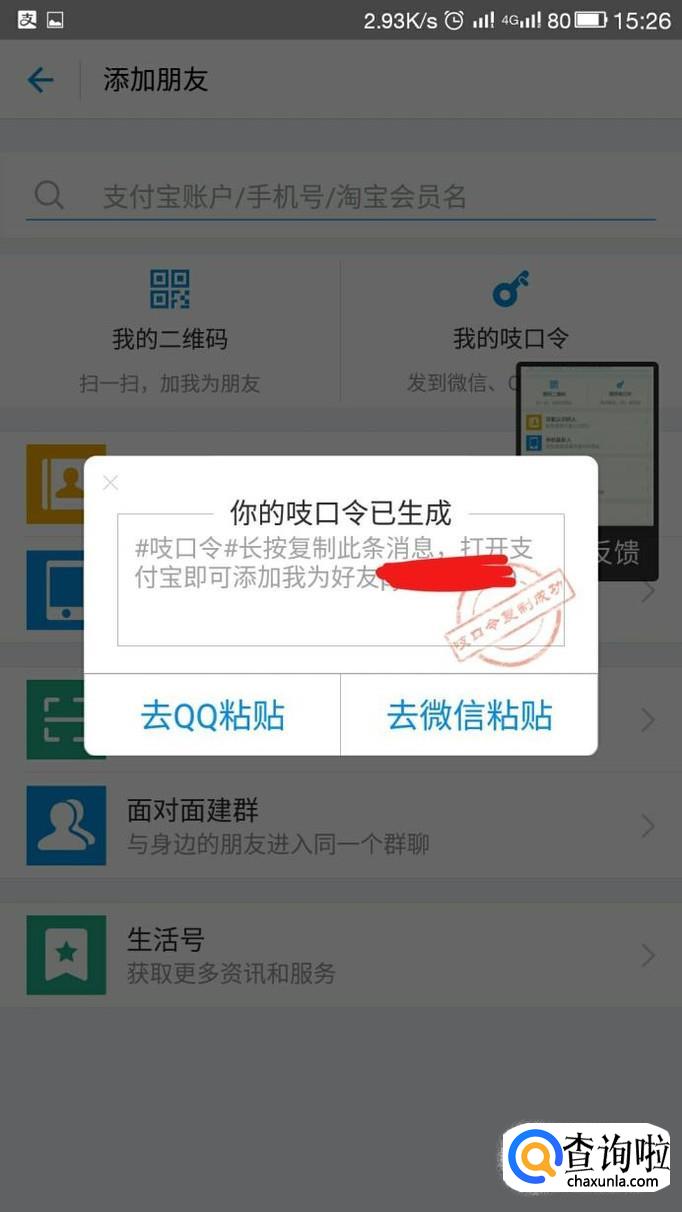 随后就可以将吱口令粘贴到QQ或者微信了。