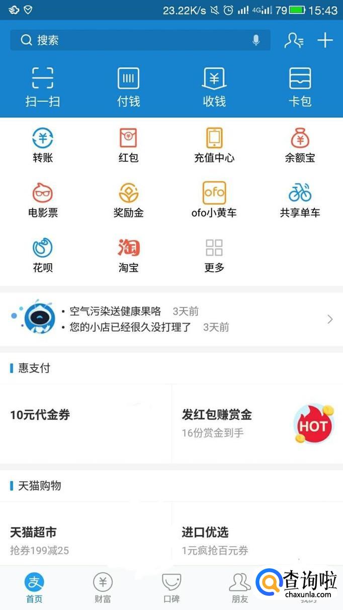 首先打开支付宝,我们看到如图界面,