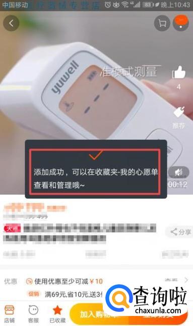 之后就会弹出一个界面显示添加成功,这样我们就将其加入了我们的心愿单了。