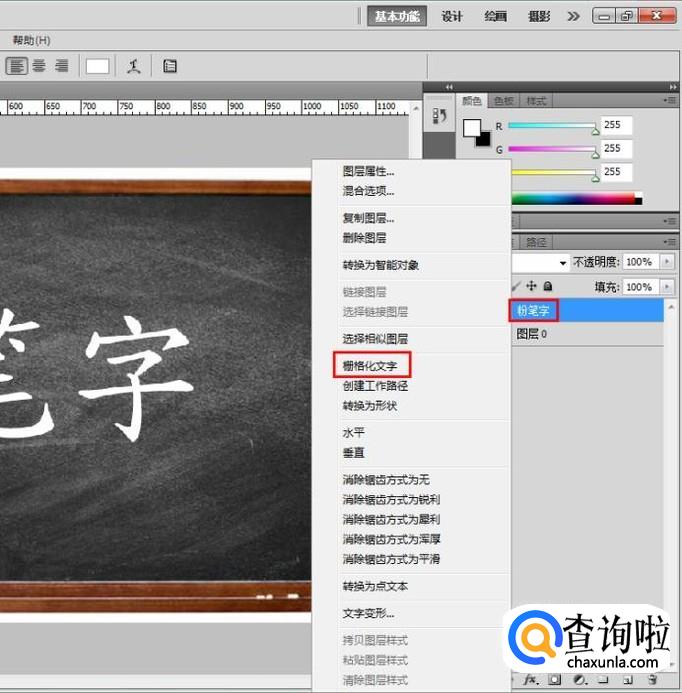 新建图层,隐藏文字图层,准备绘制粉笔字;