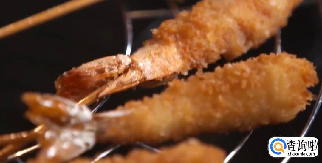 去壳和沙线的基围虾在面糊中蘸一下,再裹上一层面包粉,放入七八成熟的油中,炸2-3分钟,表面金黄即可。