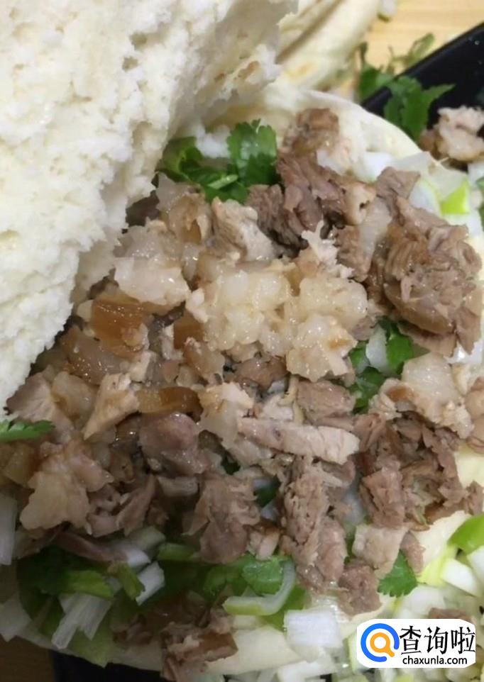 接着我们再浇上猪肉汤,摆入盘中,美味的肉夹馍就制作完成啦!