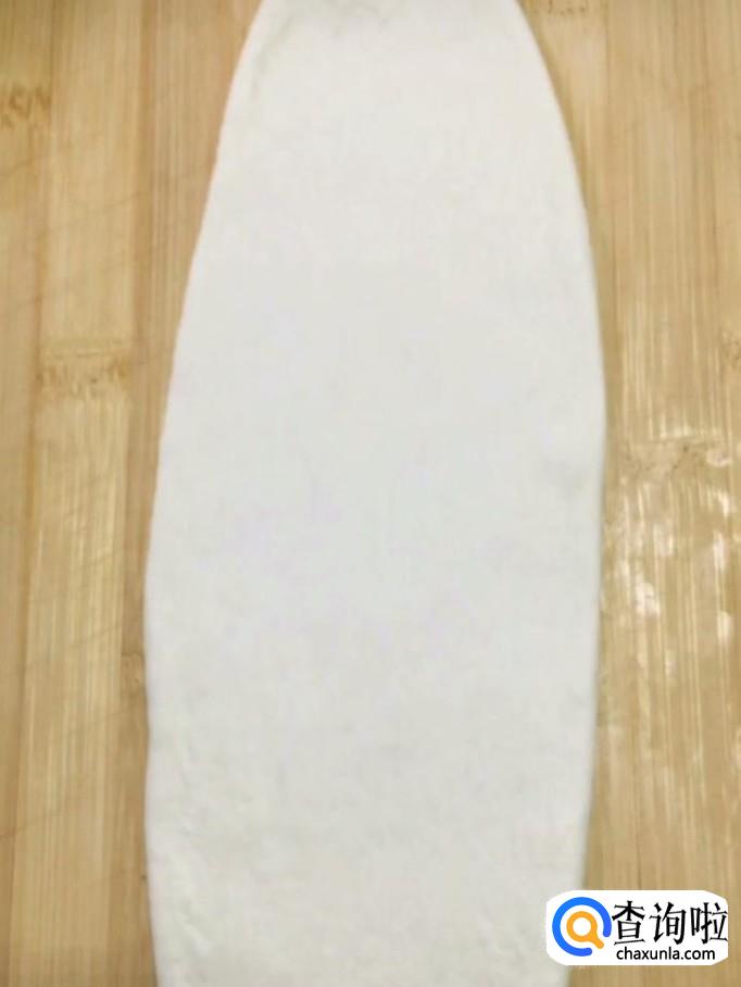 然后我们在上面抹上一层食用油,卷起来,用手按扁,擀成饼