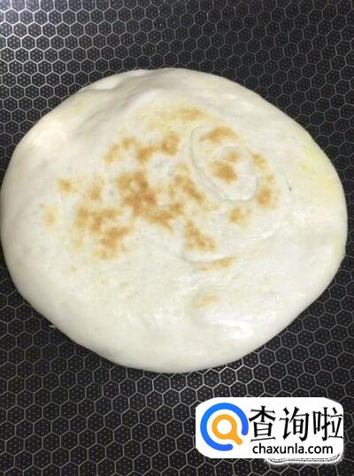 接着我们把做好的饼放入平底锅中,煎至两面金黄取出备用