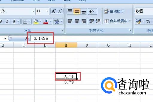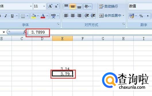 Excel中第二个数3.7899,如图自动四舍五入为3.79