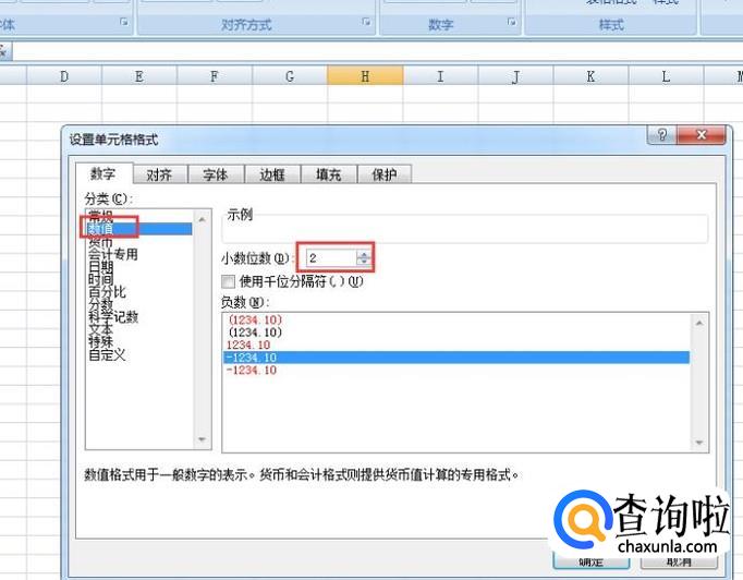 在弹出的对画框中我们看到此时为数据格式,小数位数保留2位
