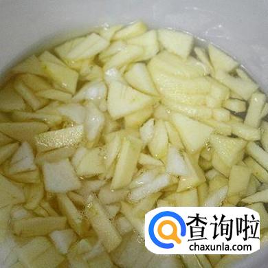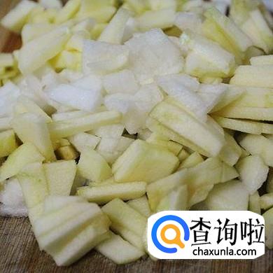 将苹果和梨用清水洗净,去掉皮和核,然后用刀将它们切成块儿备用
