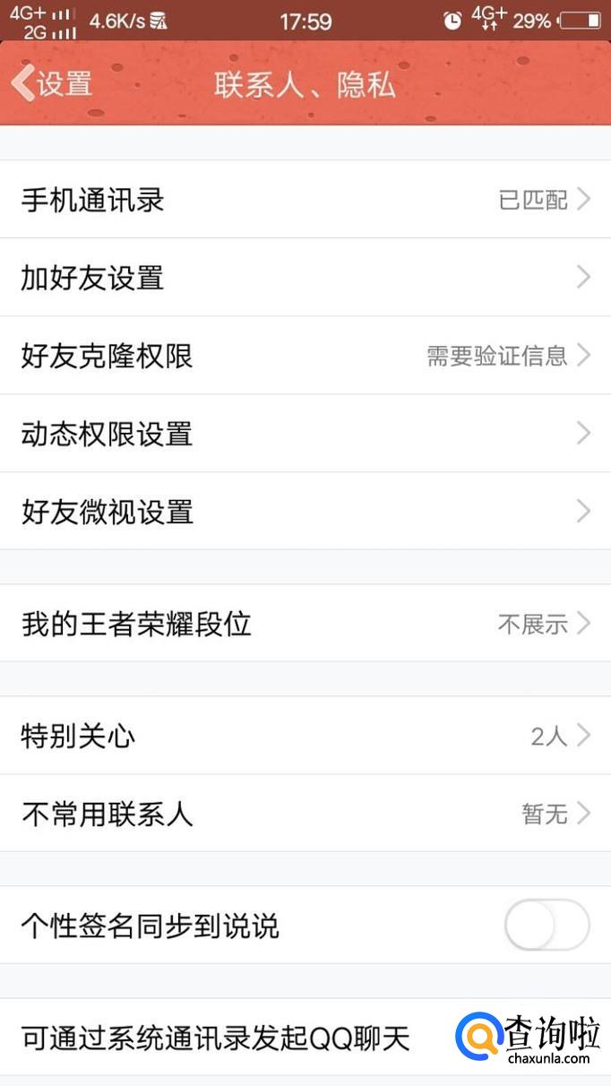紧接着进入到相关页面以后,我们手动找到并且点击联系人隐私。
