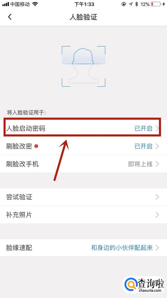 然后点击人脸启动密码,如下图所示。