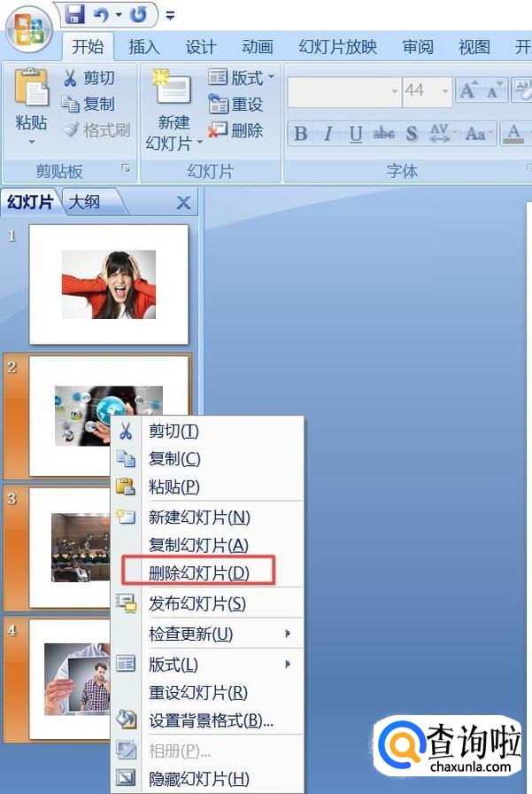 之后我们右击选择删除幻灯片;