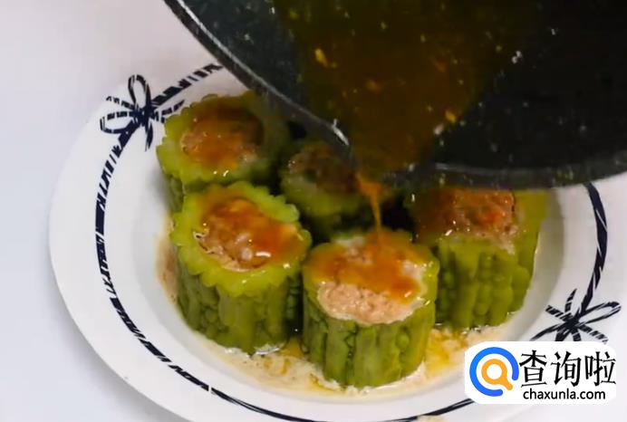 接着把苦瓜汁加淀粉、生抽勾芡。