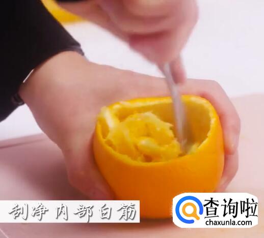 掏出橙肉,刮净内部白筋。