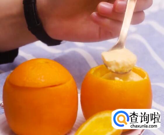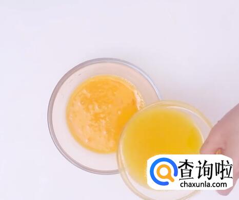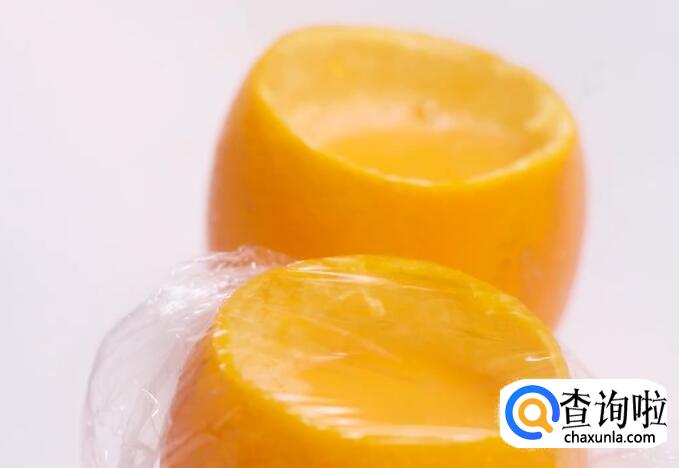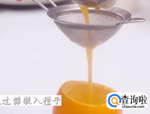 蛋液过筛装入橙子。