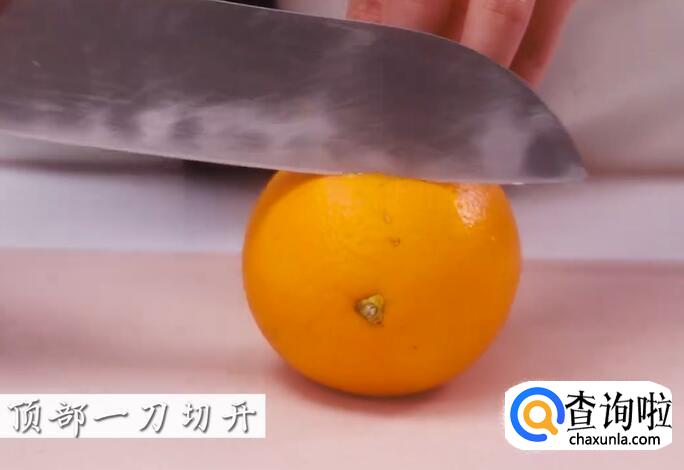 橙子顶部一刀切开。