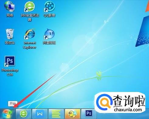打开电脑,单击屏幕下方开始菜单,如下图;
