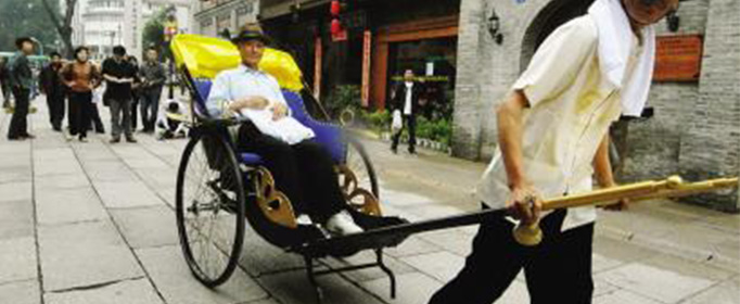 黄包车夫长期以来都给人留下了悲惨的印象。除了工作本身的高强度,坐车人的锦衣玉食与拉车人的衣衫褴褛这种视觉上的鲜明对比,无疑也助推了人们对于这个职业群体的同情,使得黄包车夫成为那个时代被压迫者的一个典型代表。