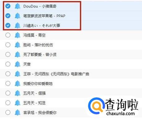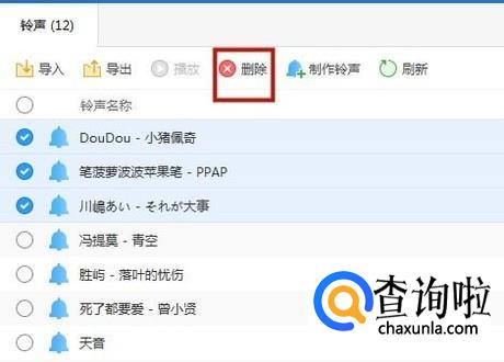 然后选择我们要删除的铃声。(注意这些铃声是我们从第三方插件导入到苹果手机的,苹果手机自带铃声是无法通过爱思助手删除的。)