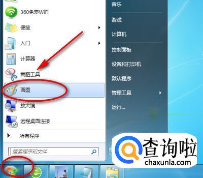 然后再点击电脑左下角“开始图标”,在弹出的上拉菜单中,点击“画图”。