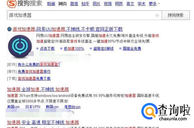 也可以下载一个游戏加速器来提升游戏的效果。直接打开搜狗浏览器,在搜索页输入:游戏加速器,然后点击进入网站下载安装。安装好只有直接打开就可以加速了。